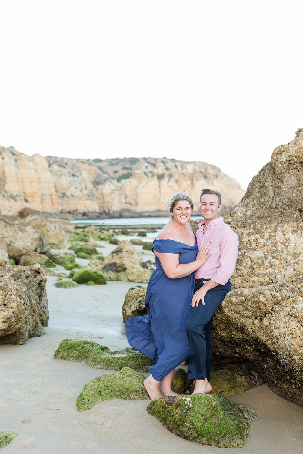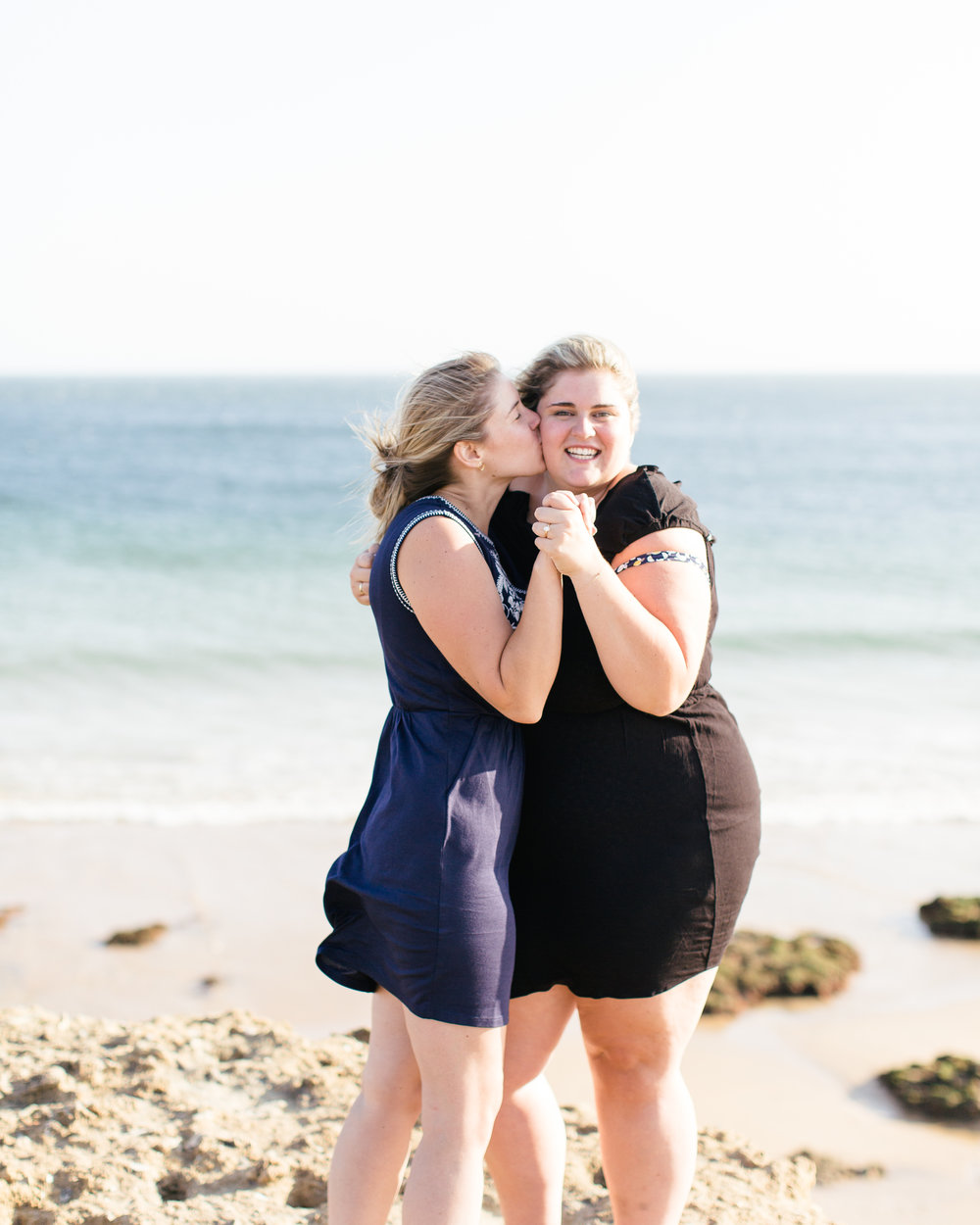 We arrived in Portugal on a Saturday morning after a red-eye flight! We went to our airbnb apartment (the same one we stayed in last time we were there!) Then, Max suggested we go to our favorite beach, Carcavelos! That should have triggered me thinking he might propose but I think I was a little to excited (and sleep-deprived) to really consider it. We walked along the beach, drank some Vino Verde out of plastic cups and sat along the cliffs. There was actually a couple sitting right near us in the perfect photo spot so Emily said “once they move, I’ll get a picture of you and Max.” I could tell everyone was starting to get hungry so I suggested we head back to the city to get dinner and all three of them said “No, we’re okay.” After a little while, that couple moved so we stood up to take a picture. Little did I know, Max had sneakily grabbed the ring box from his backpack and held it behind his back as he walked over. I’m just standing there with my hand on my hip (my go-to pose!) when Max says “I need to ask you a question.” I 100% thought he was about to say “Can we go get dinner? I’m really hungry” but to my shock he said “Will you Marry Me?” I thought he was joking at first, but then he opened the ring box to the most beautiful ring I’ve ever seen. I basically started hyperventilating and said “Yes!” It was the single most exciting moment of my life. I’ve known I loved this boy since I was 15 so I am beyond thrilled to finally be his wife!
