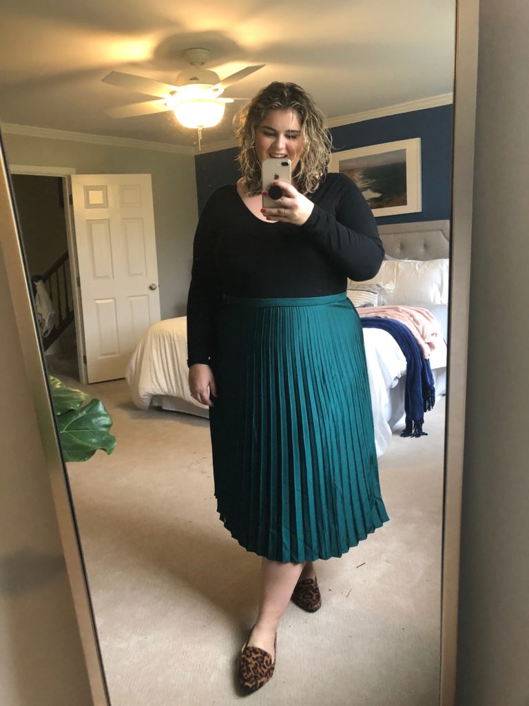 With the holidays in mind, I picked up this beautiful J.Crew skirt. I’m so excited to wear this with a black bodysuit and some fun shoes. It’s really pretty on and super comfortable. I also saw a really similar option at Target in burgundy.