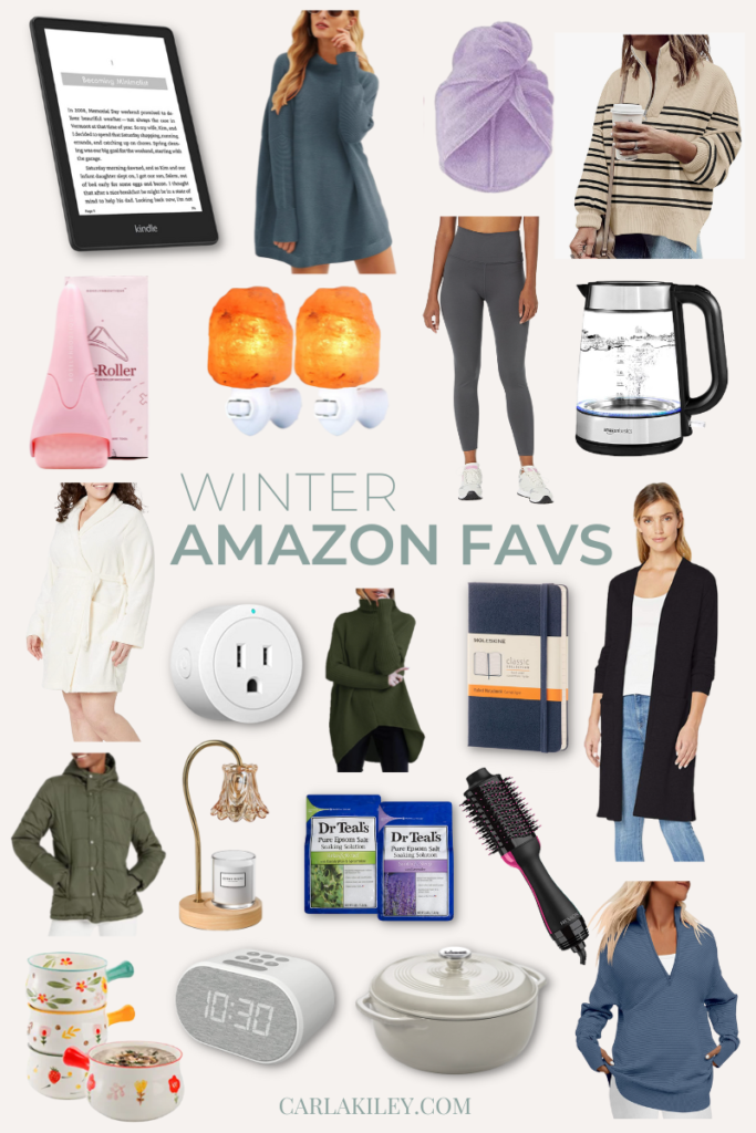 Kindle | Batwing Oversized Sweater | Turbie Twist Hair Towel | Side Slit Pullover | Ice Roller | Salt Lamp | Leggings | Electric Kettle | Fuzzy Short Robe | Smart Plugs | Asymmetric Turtleneck Sweater | Journal | Lightweight Long Cardigan | Heavyweight Puffer Coat | Candle Warmer | Bath Salts | Revlon One-Step Hair Styler | Soup Crocks | Backlit Alarm Clock | Dutch Oven | Ribbed Knit Pullover
