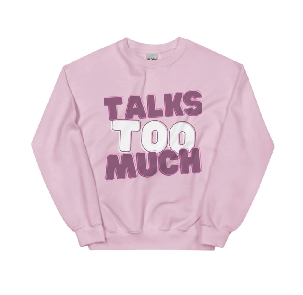 We love putting out our podcast, Talks Too Much, and are so grateful for all the amazing feedback we’ve gotten on it since we started. To celebrate our second season, we decided to make super cozy TTM sweatshirts! There are four designs that are all perfect for lounging as the weather cools down. If you love the podcast, we hope you’ll twin with us!!